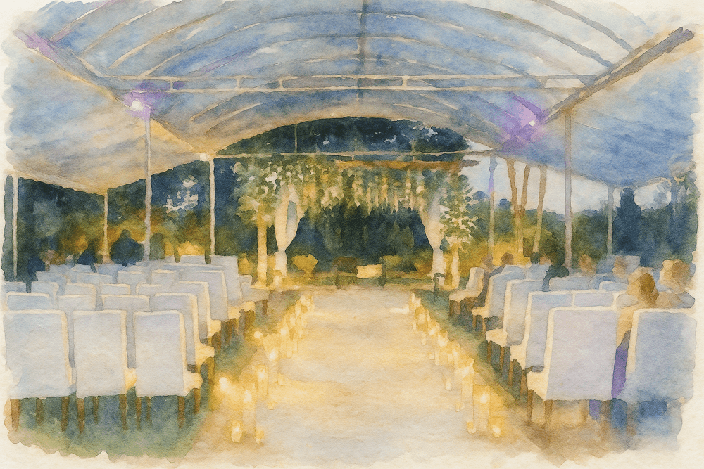A cerimônia acontecerá ao ar livre. Para caminhar com leveza, sugerimos sapatos confortáveis.